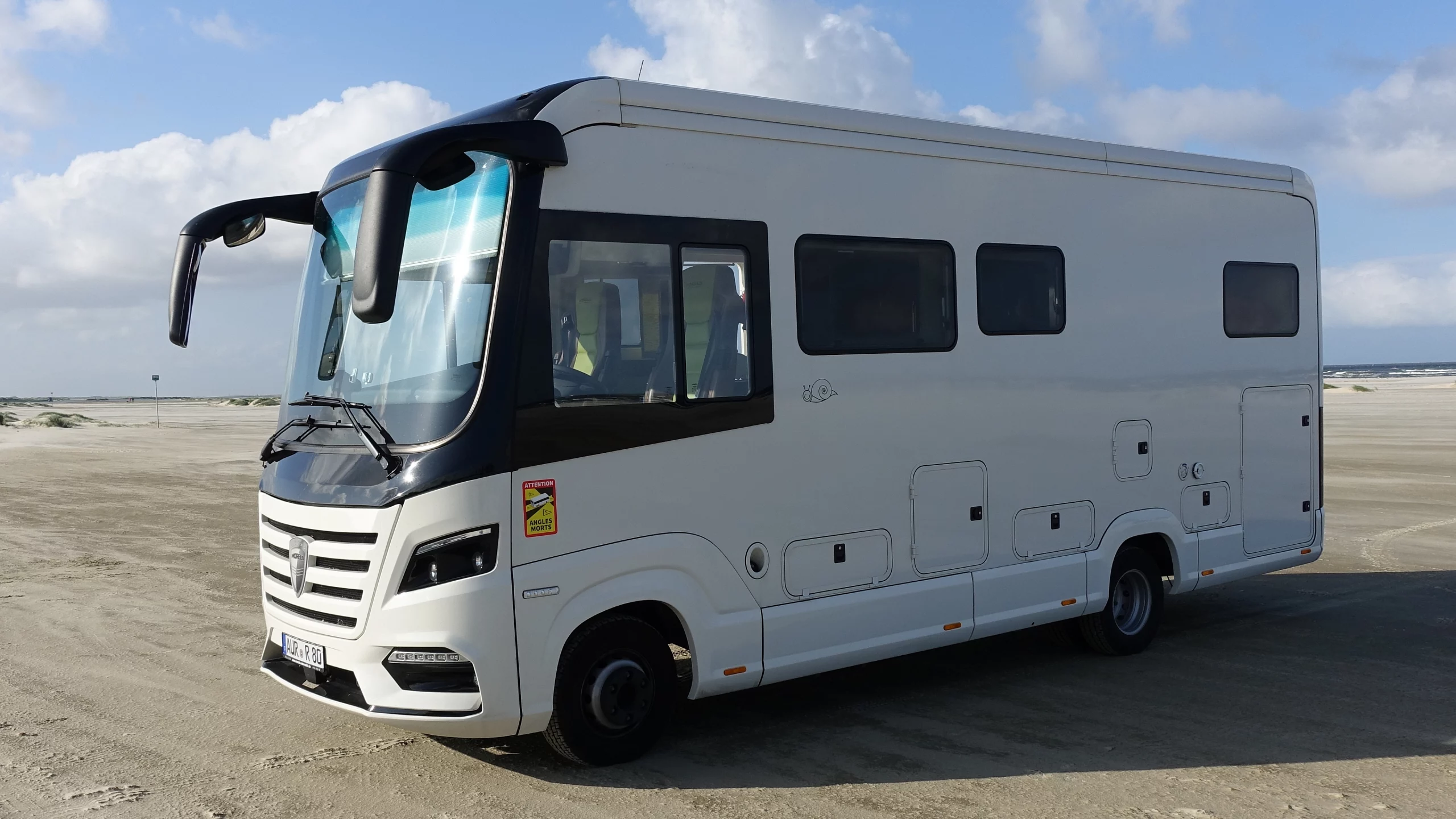 Wir haben uns für einen MORELO Loft 74 H anlässlich eines Besuches bei MORELO in Schlüsselfeld recht zügig – im Mai 2020 – entschieden und im November 2020 direkt vom Werk abgeholt. Hier ein Foto am Strand auf der Insel Fanø (DK). Wir wollten auf jeden Fall unter 8 Metern Länge bleiben. Und der Name des neuen Wohnmobils folgt natürlich der Tradition: Schnecke 3.0