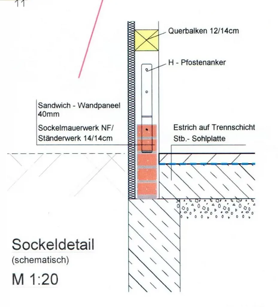 Grundriss, Gebäudeschnitt und Sockeldetail